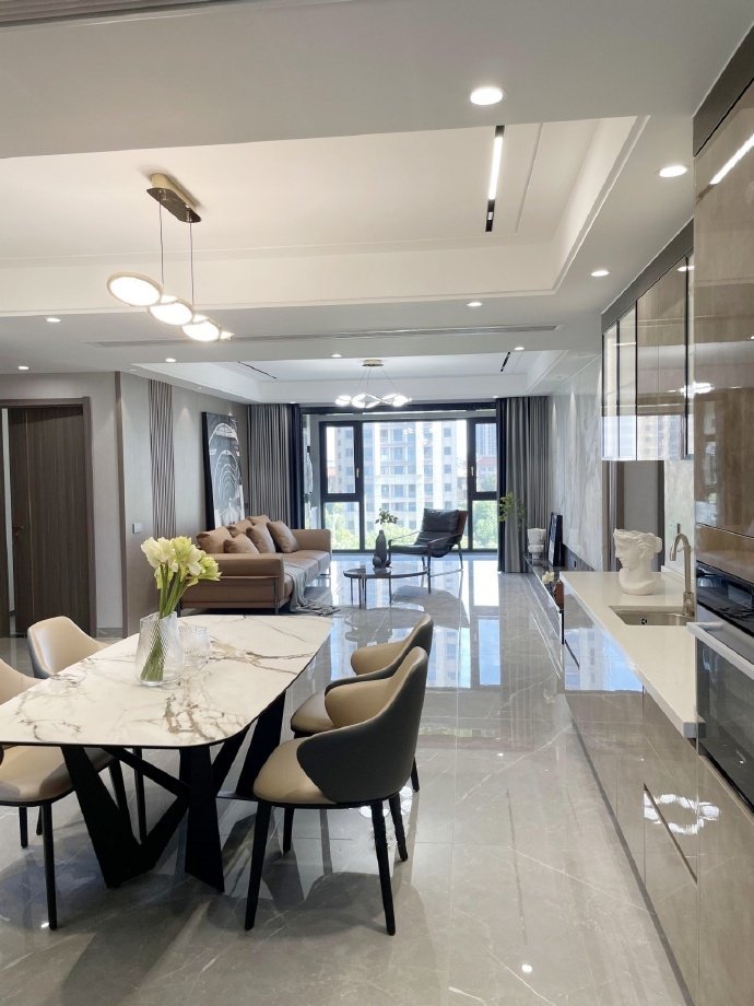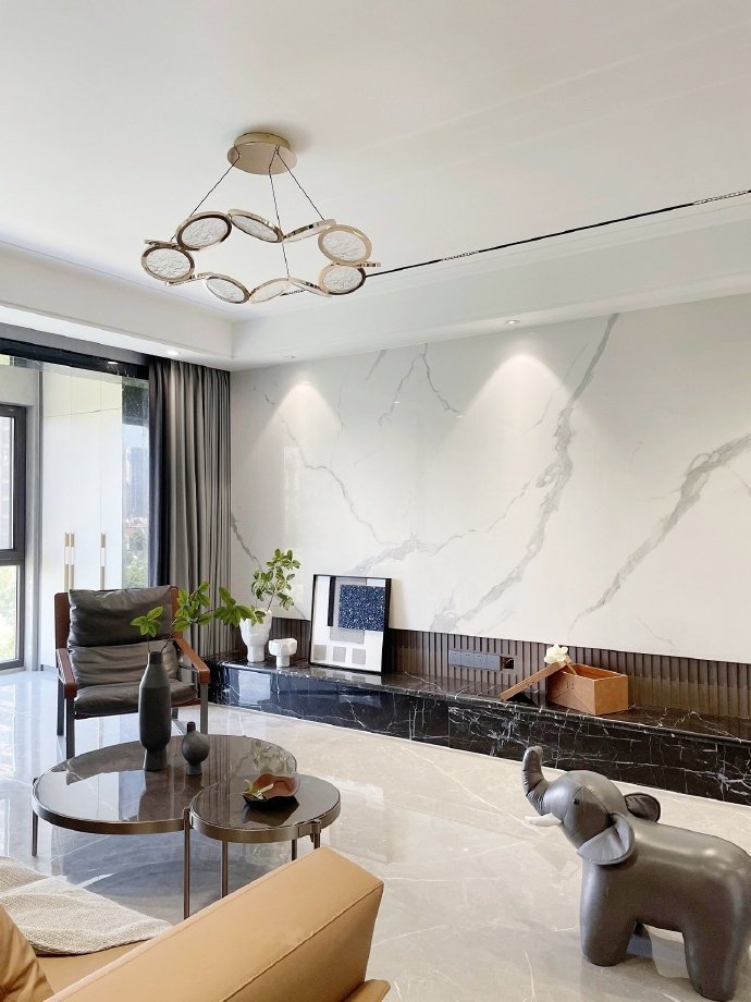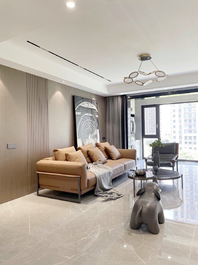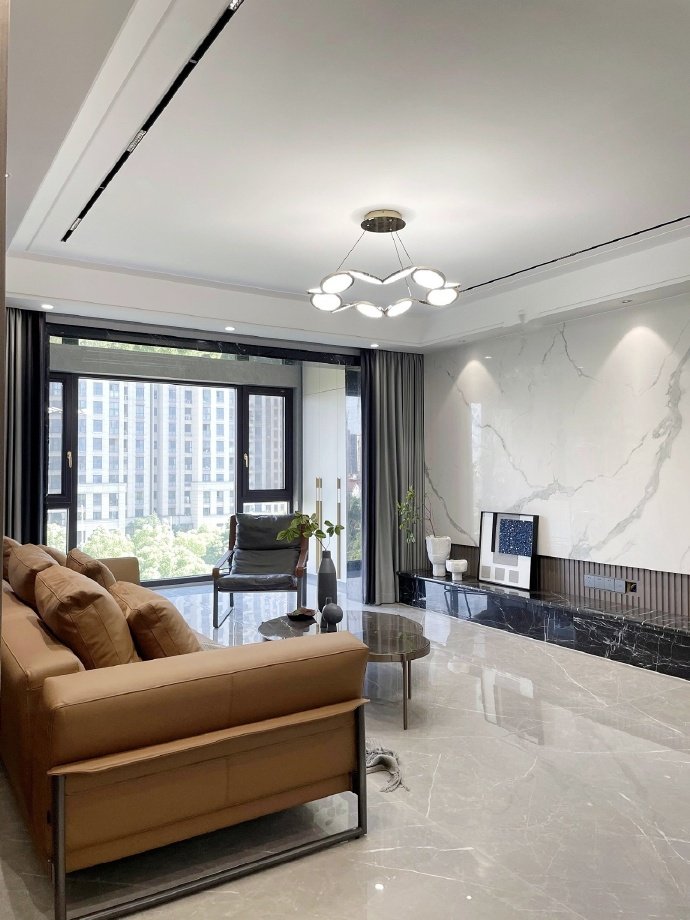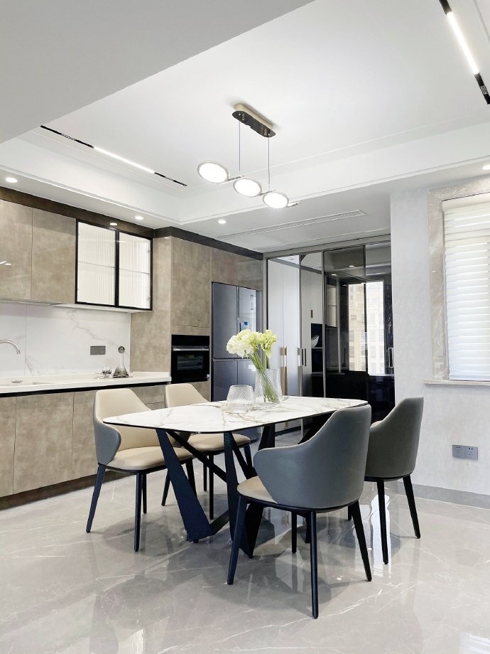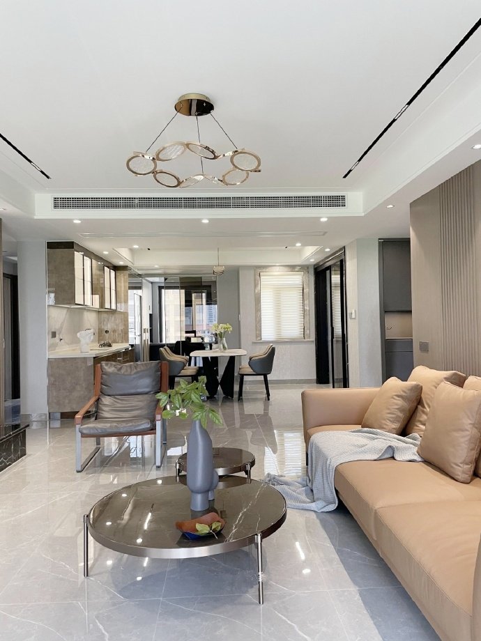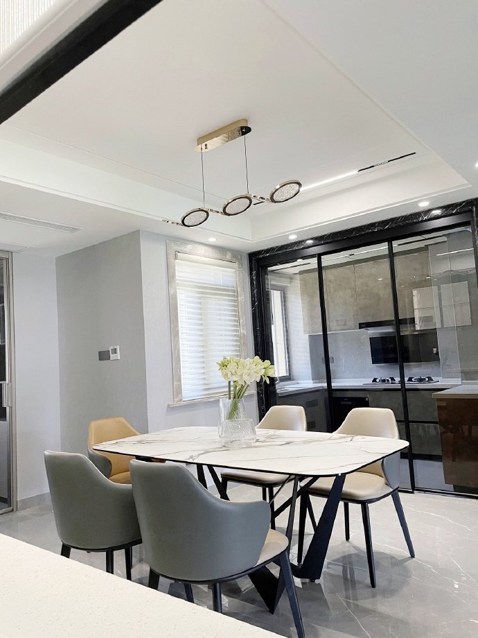 135平方现代简约三居室装修案例效果图。