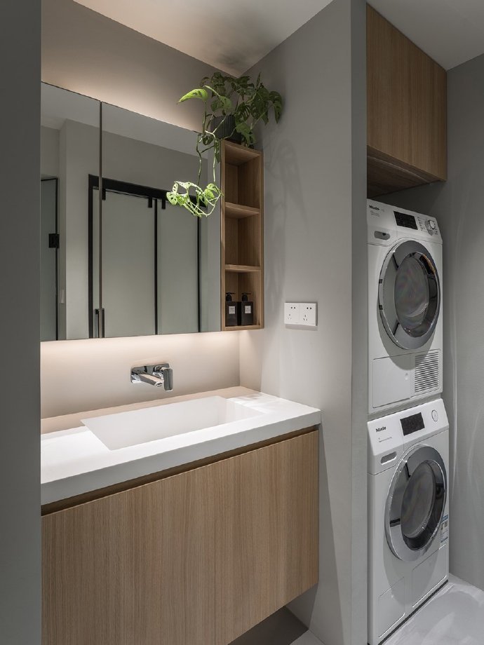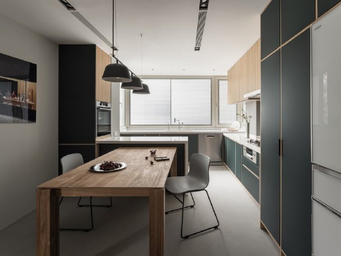90㎡现代混搭风三居室装修案例效果图。