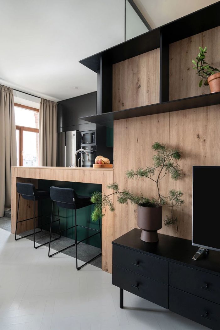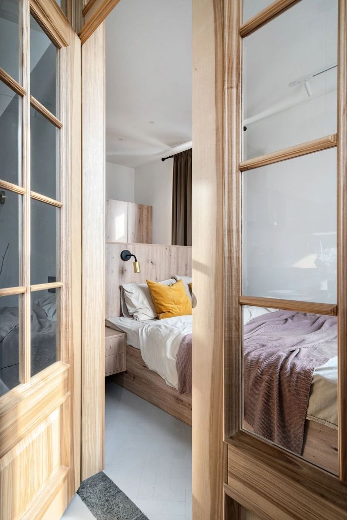 60平小户型原木北欧风两居室装修案例效果图。