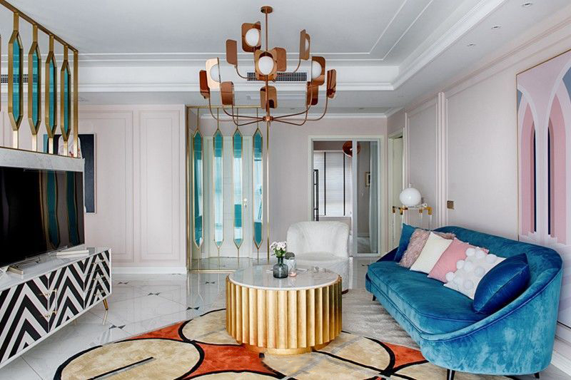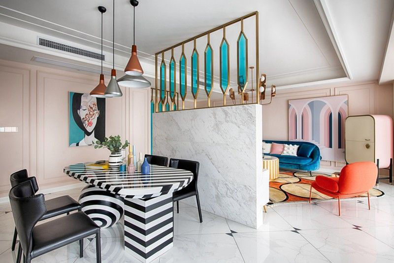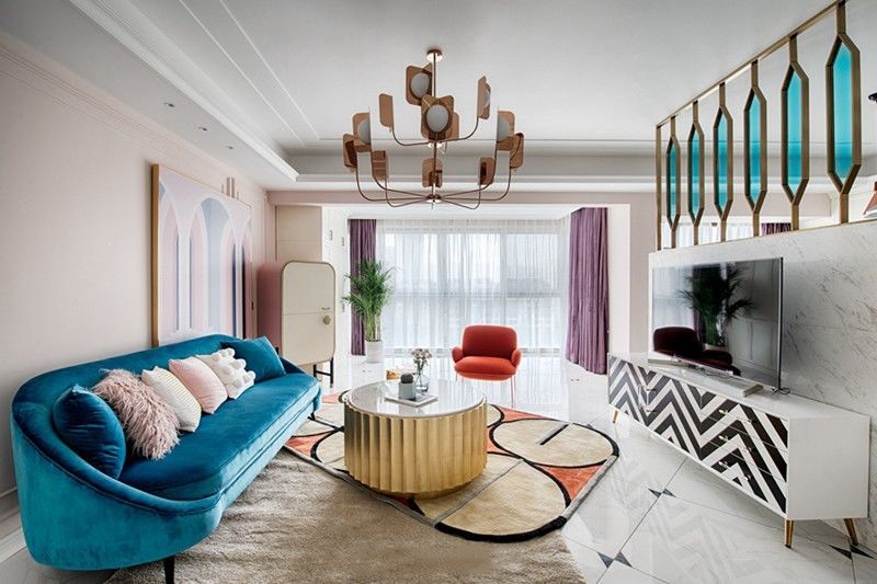 130㎡混搭风格三居室装修设计效果图。