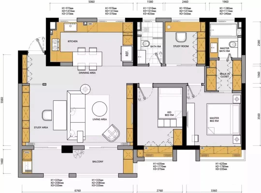 120㎡现代轻奢风,开放式设计和朴素的色调