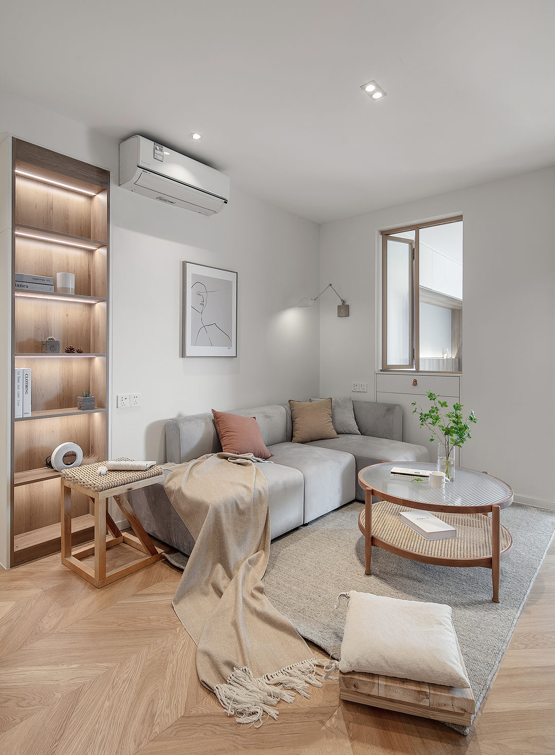 75㎡一人居,豆蔻青+苔绿,以开放的手法重构都市简约风!