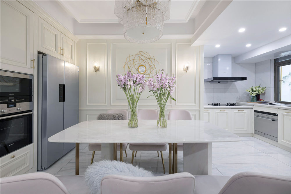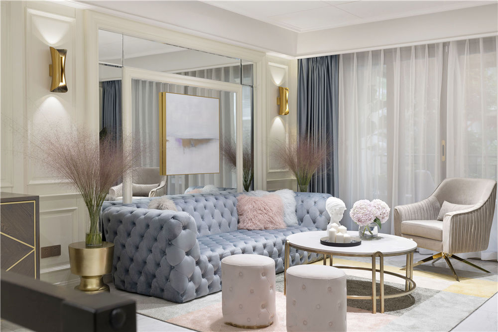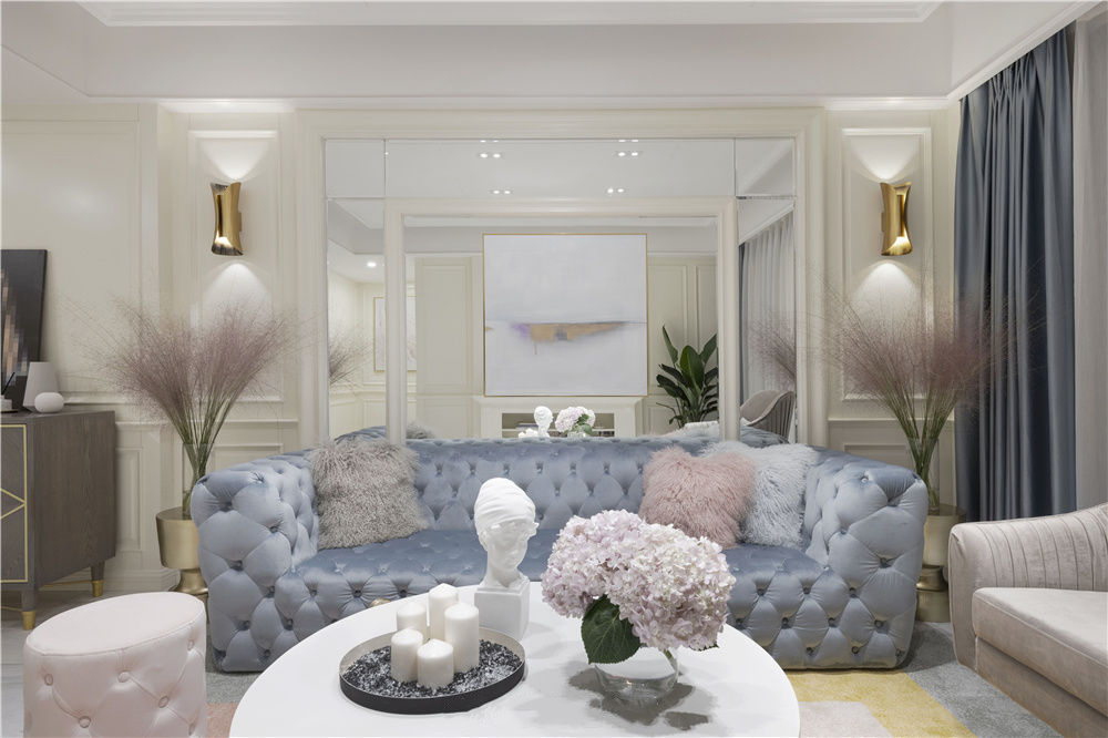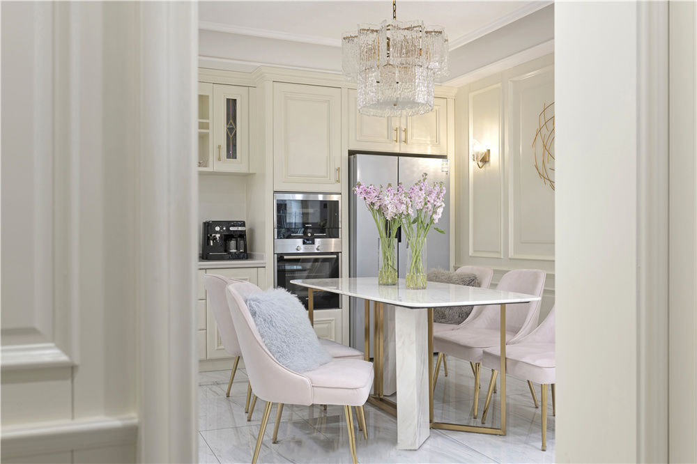 180㎡欧式轻奢风三居室装修案例效果图。