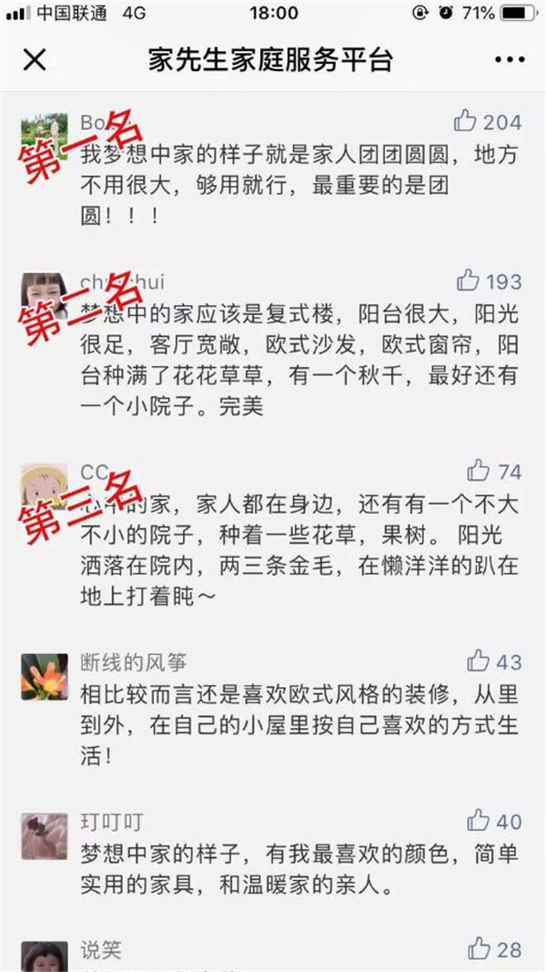 截止18日18:00时,在公众号指定文章下方留言“自己梦想中家的样子”,点赞数前三名将分别获得150/100/50元现金红包。