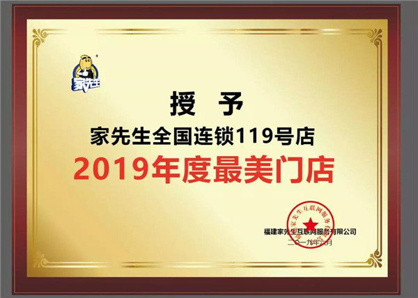 奖品:家先生第一届“最美门店”证书以及1520元现金奖励