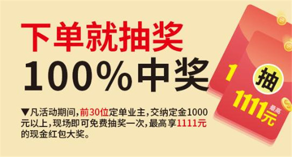 凡活动期间,前30位定单业主,交纳定金1000元以上,现场即可免费抽奖一次,最高享1111元的现金红包大奖