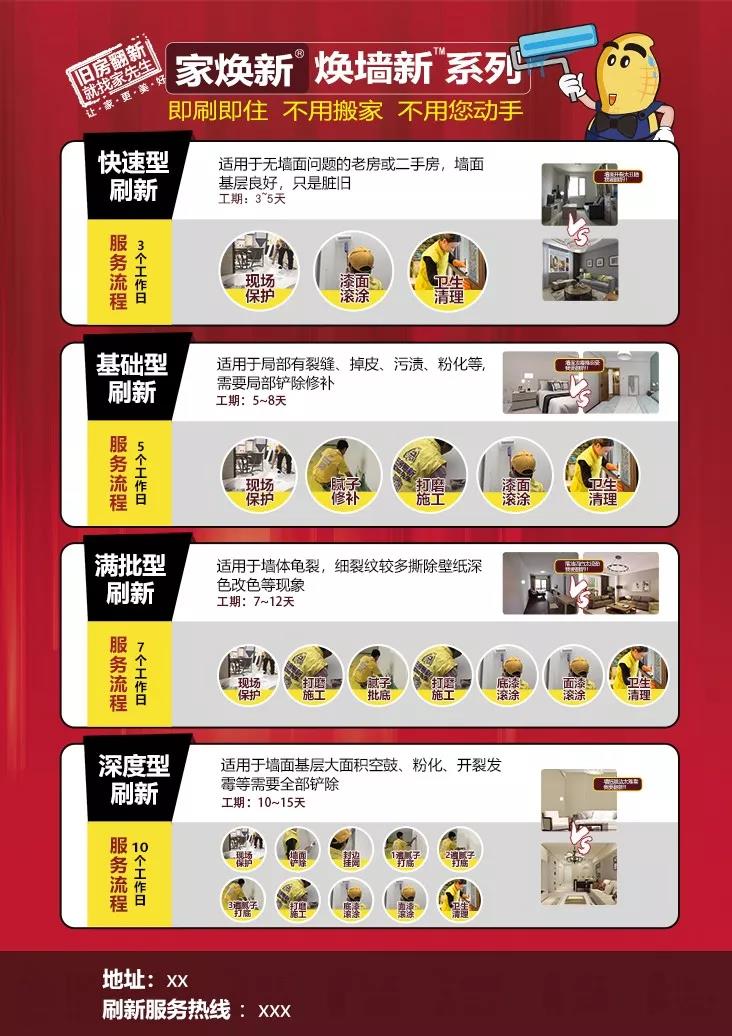针对这个尴尬的时期,旧房翻新全国连锁品牌家先生经过多方市场调研,组织设计、施工、材料方面专业人材,优化施工流程、改进施工工艺、筛选品质主材,在年底推出了超高性价比的“墙面翻新”活动,仅需2-15天即可实现墙面旧貌换新颜,帮你实现年底住新家的愿望。