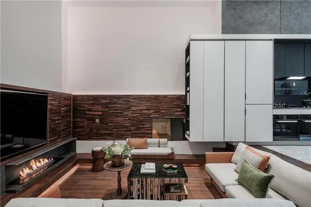 一楼的多功能厅,平时可以用来做瑜伽,随着电动茶几升起就可以变成一个小茶室。