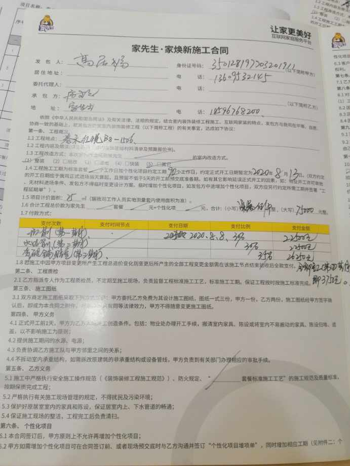 客户不停,签单不断,开工不断,感谢业主对家先生的信任。