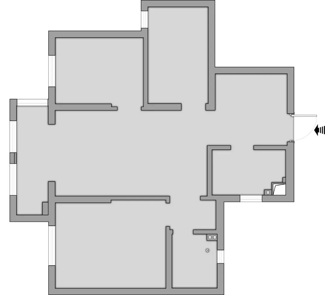 这是一套十来年的老房,因为是中间户所以入户采光比较弱,四面大白墙,非常单调,没有做储物规划面积太过浪费,收纳极为欠缺。