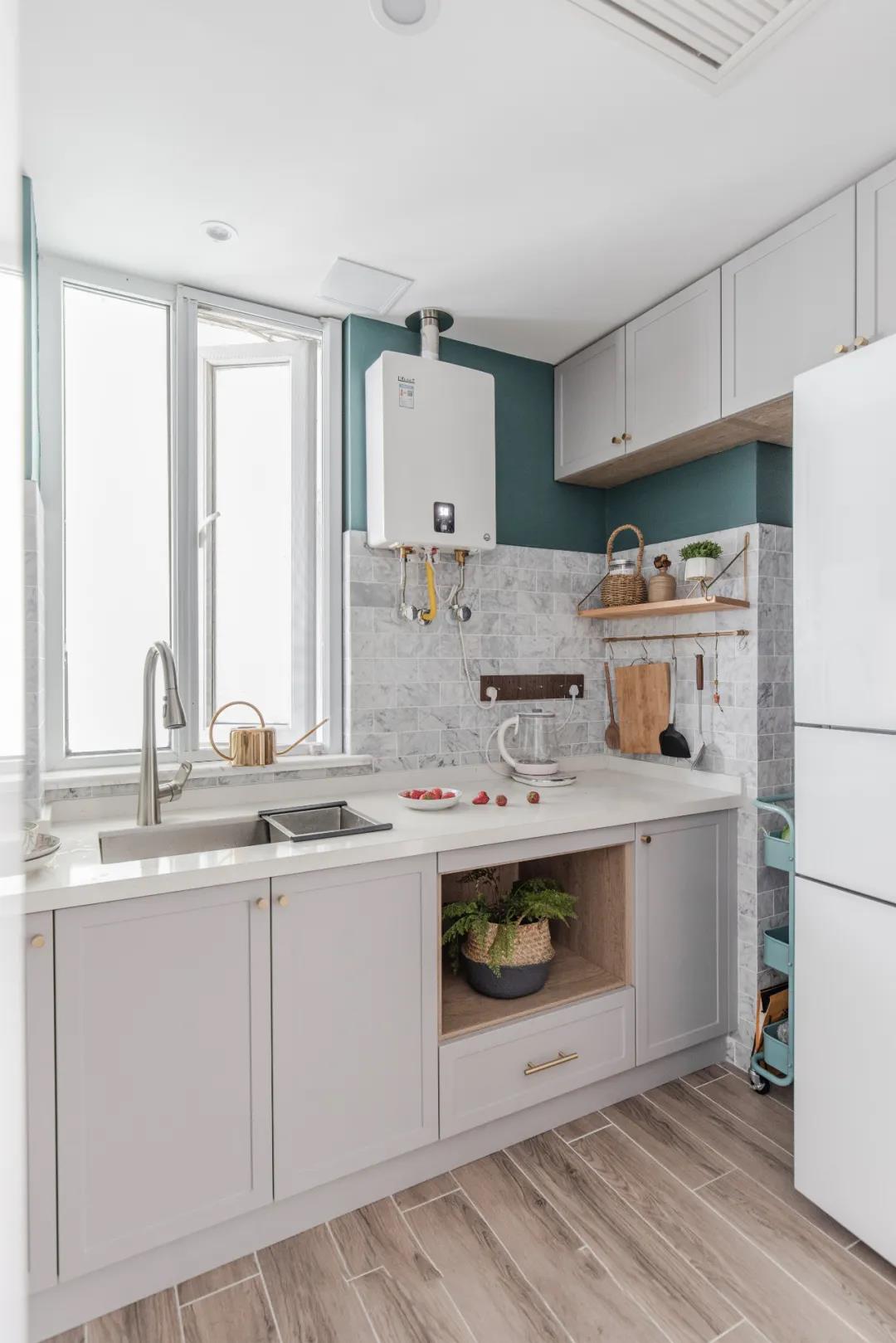 同一色橱柜搭配金属拉丝小把手精致又大气