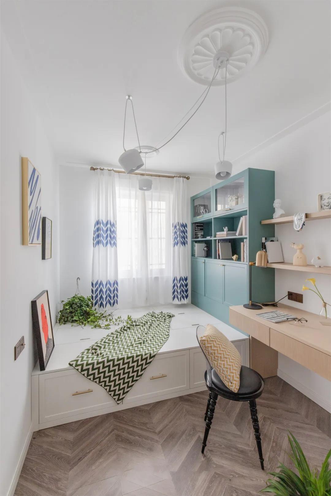 上半部分是蓝绿色的乳胶漆,更有层次感