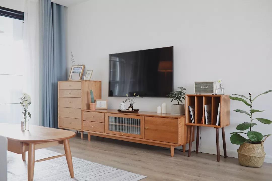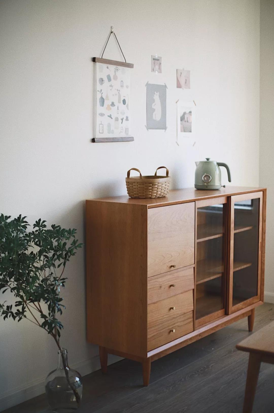 只用几种樱桃木的家具和绿植搭配,却意外的好看