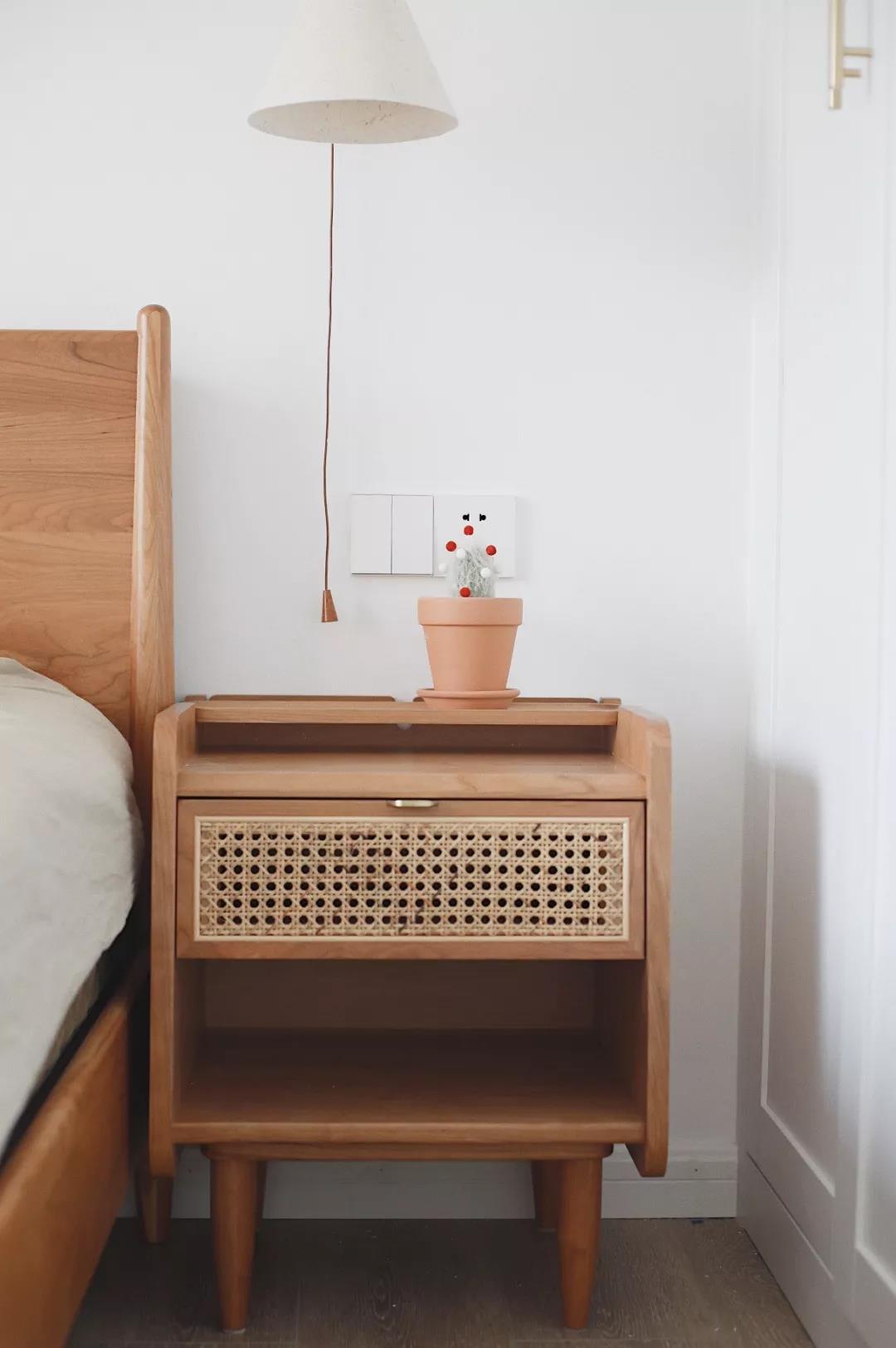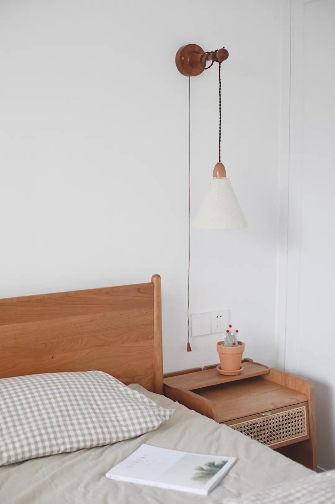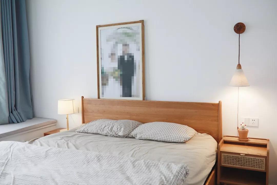 主卧依然选择了樱桃木色的床和床头柜,没有做吊顶