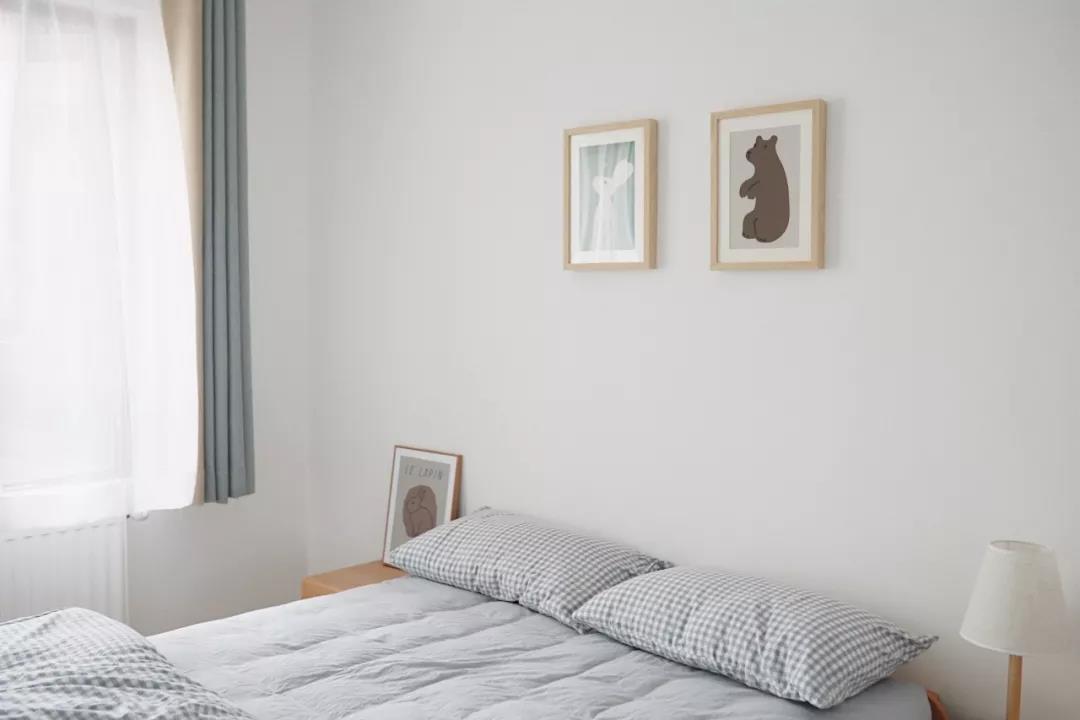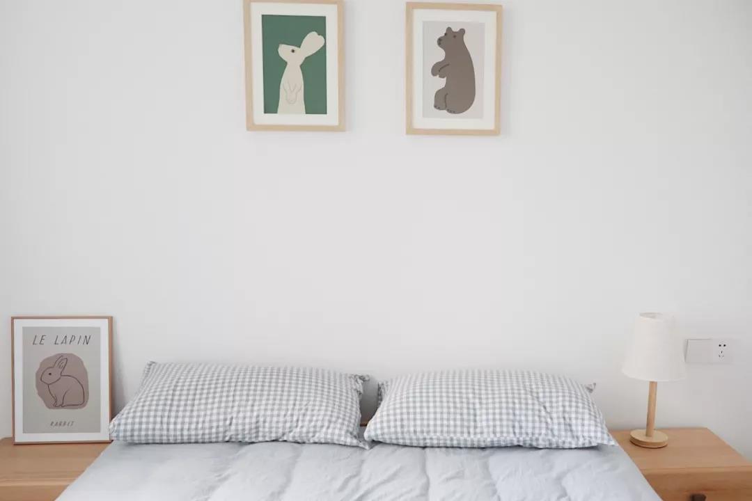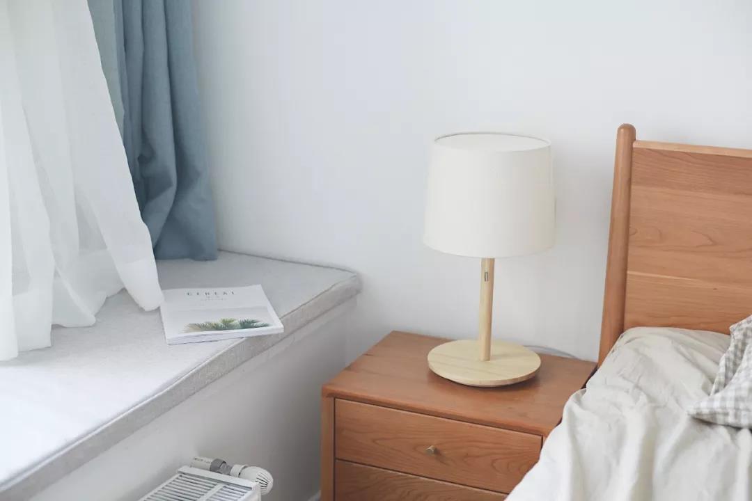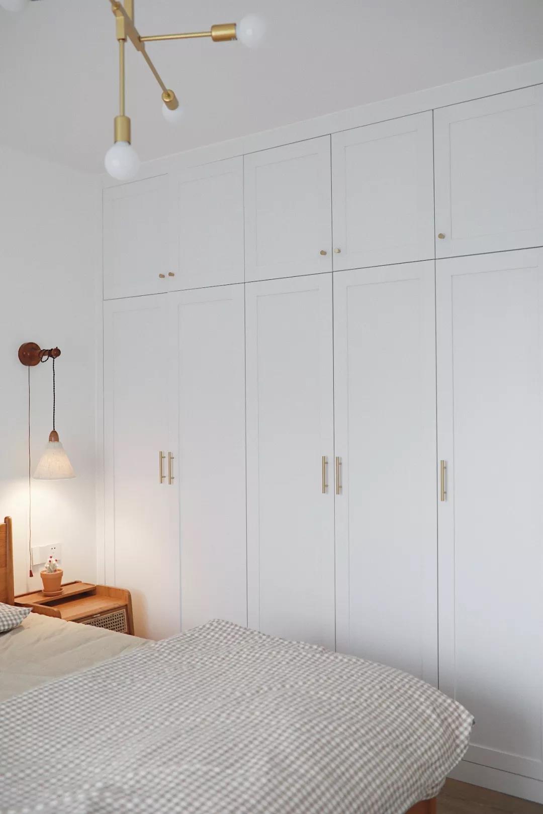 主卧依然选择了樱桃木色的床和床头柜,没有做吊顶