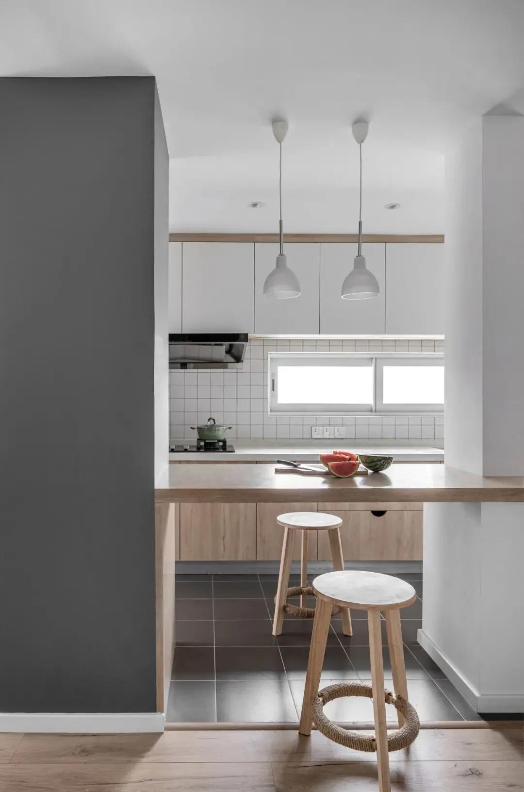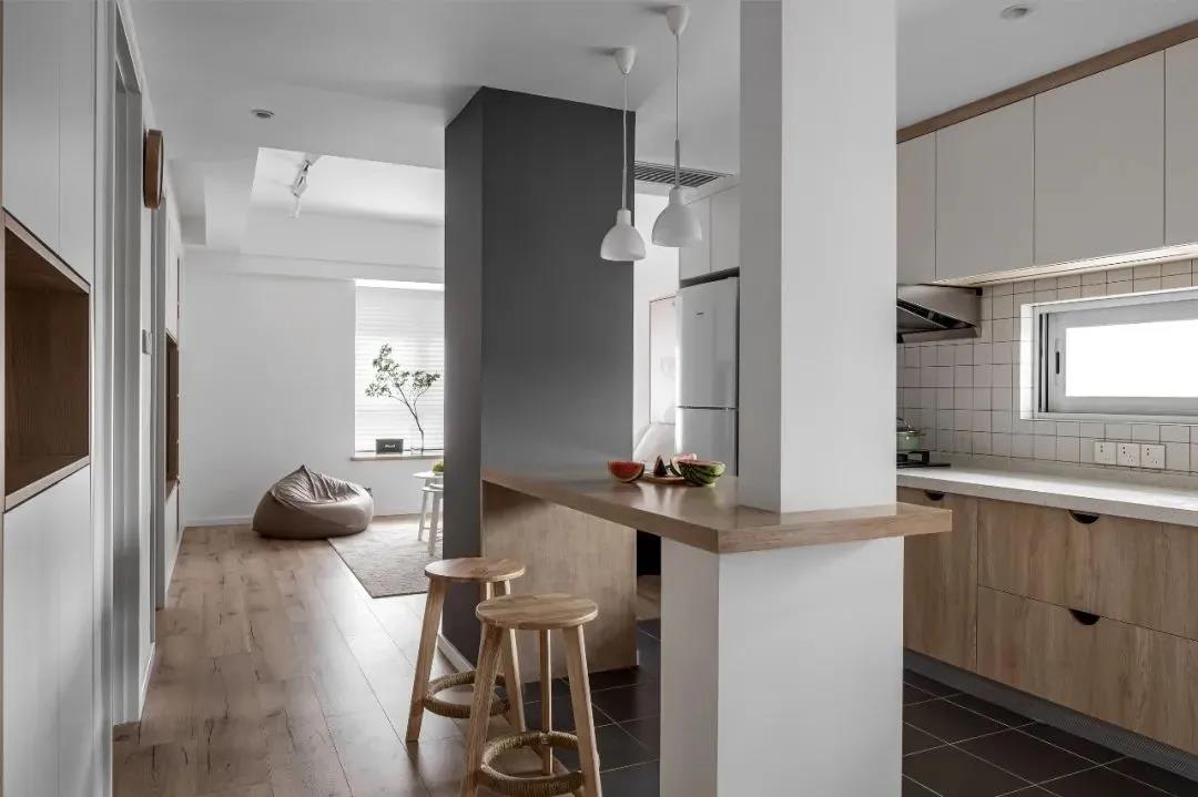 将封闭厨房打开,利用过道宽敞的位置增加吧台,变身餐厅
