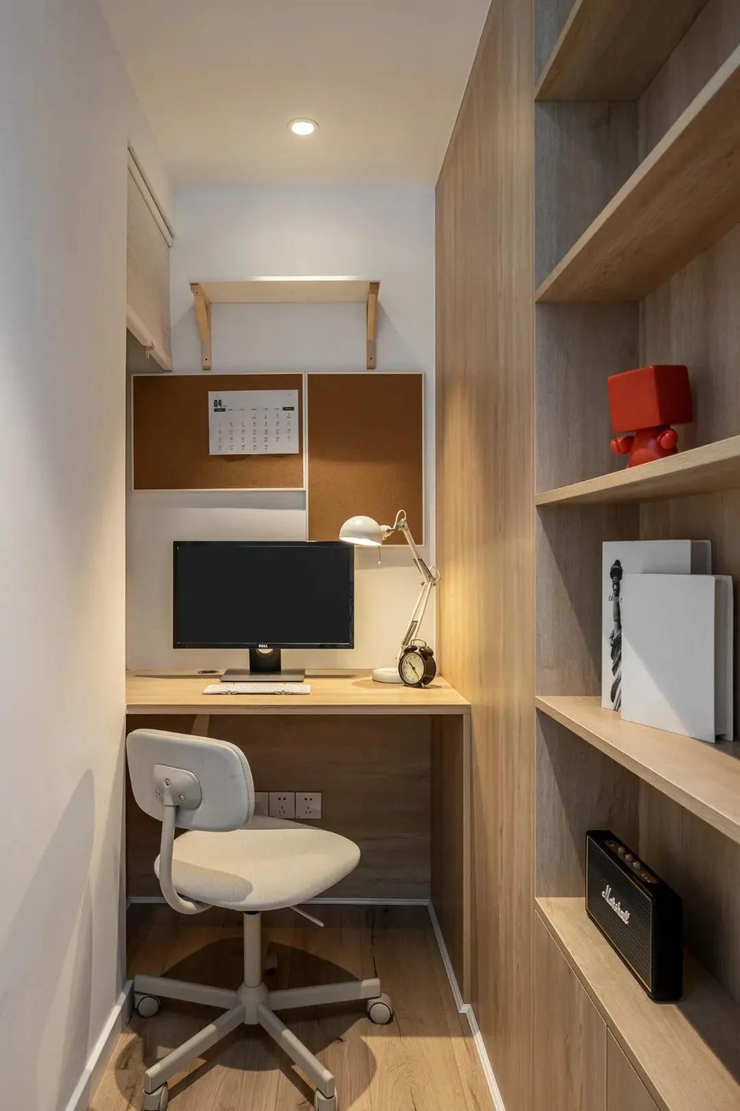 在主卧床尾衣帽间的旁边切分出2㎡打造一个独立的工作区