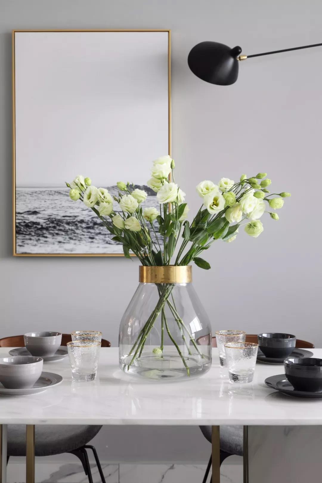 金色边框的装饰画,搭配优雅的大理石桌面,生活每天都要有仪式感!