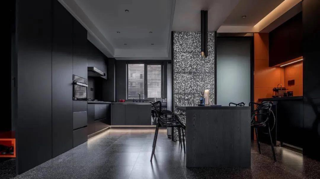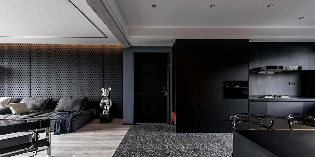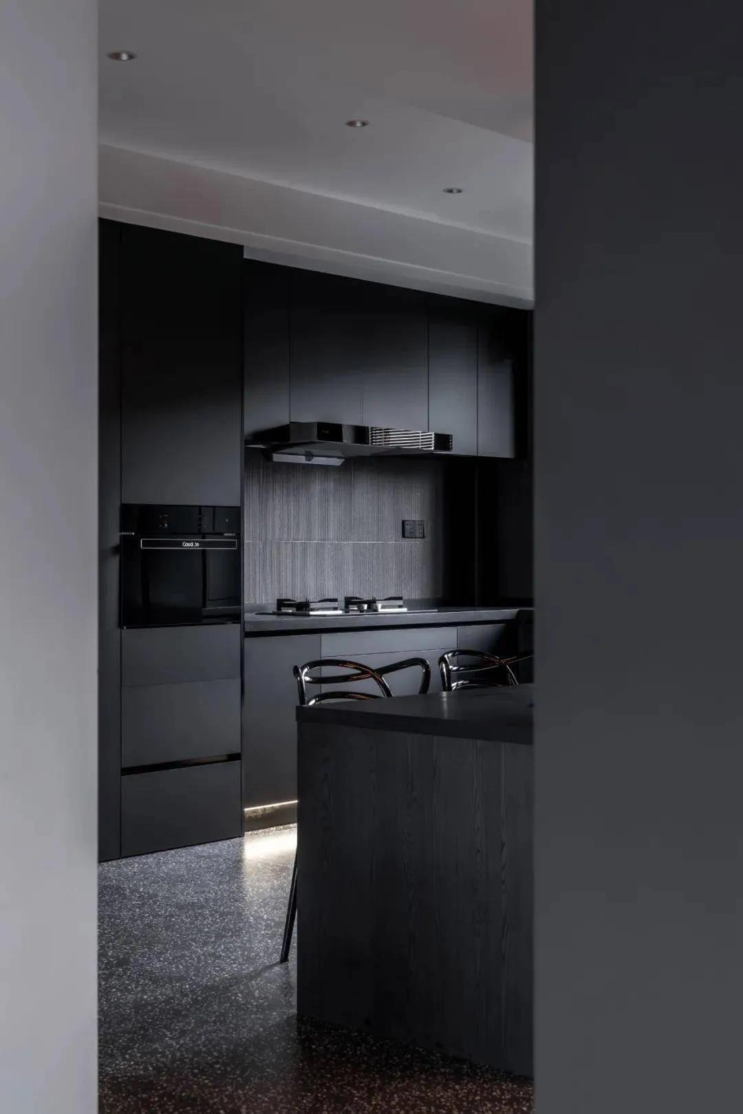 黑色,给人一种幽暗、不见天日的感觉,是一种很难驾驭的色系。在家装里一般没有人尝试大面积使用,家里如果用黑色作为基调,其实对于材质的质感、以及精准的比例处理有着更高的要求,设计师需要具备很高的敏锐度以及对色系的熟练掌控。
