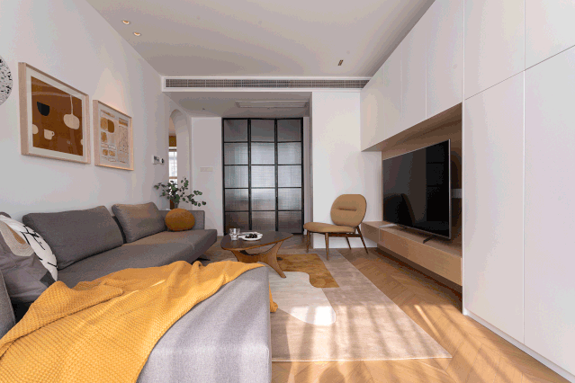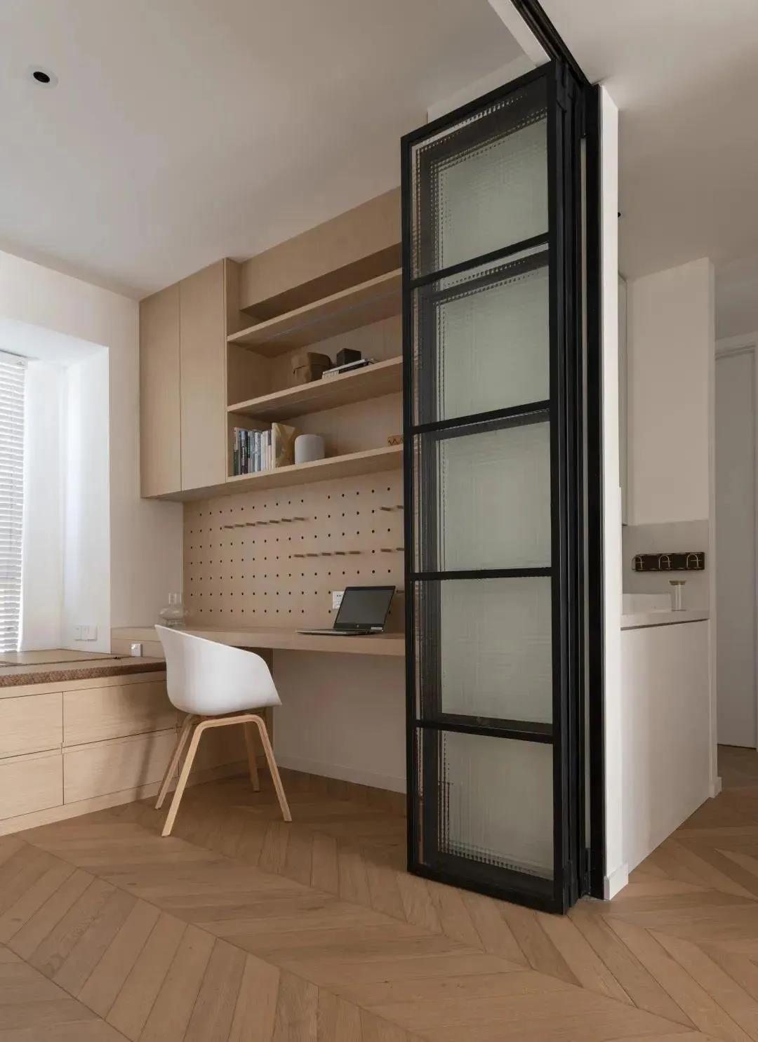 北侧小房间移门改成折叠门,令空间更灵活,打开时房子的南北完全被打通,关闭时依旧是两个独立空间。