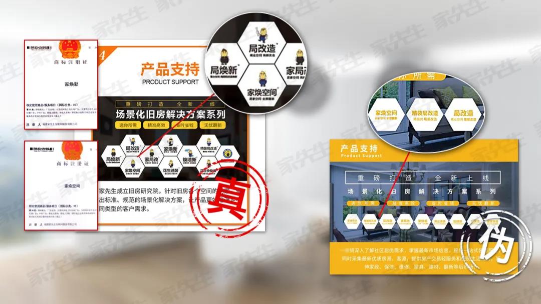 “场景化旧房解决方案系列”是家先生将场景特性与个性化需求相结合,重磅打造的注册商标知识产权的专业旧房场景用户解决方案,“家焕空间”及“家焕新”等商标均受国家法律所保护,某修某品牌擅自使用家先生商标,属严重侵害家先生知识产权的行为。