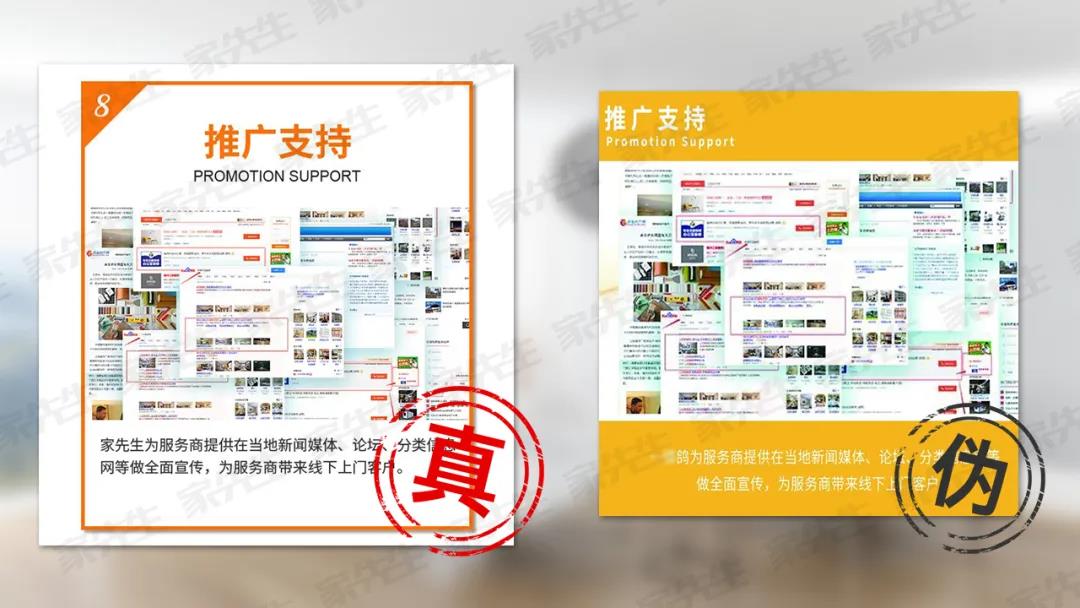 针对此类事件,家先生在第一时间建立品牌维权体系,收集证据,全力打假。通过积极联动各级工商部门、市场监管部门、专业法律机构,将会对一切侵犯家先生品牌的商家进行起诉,维护消费者、服务商及品牌的合法权益。