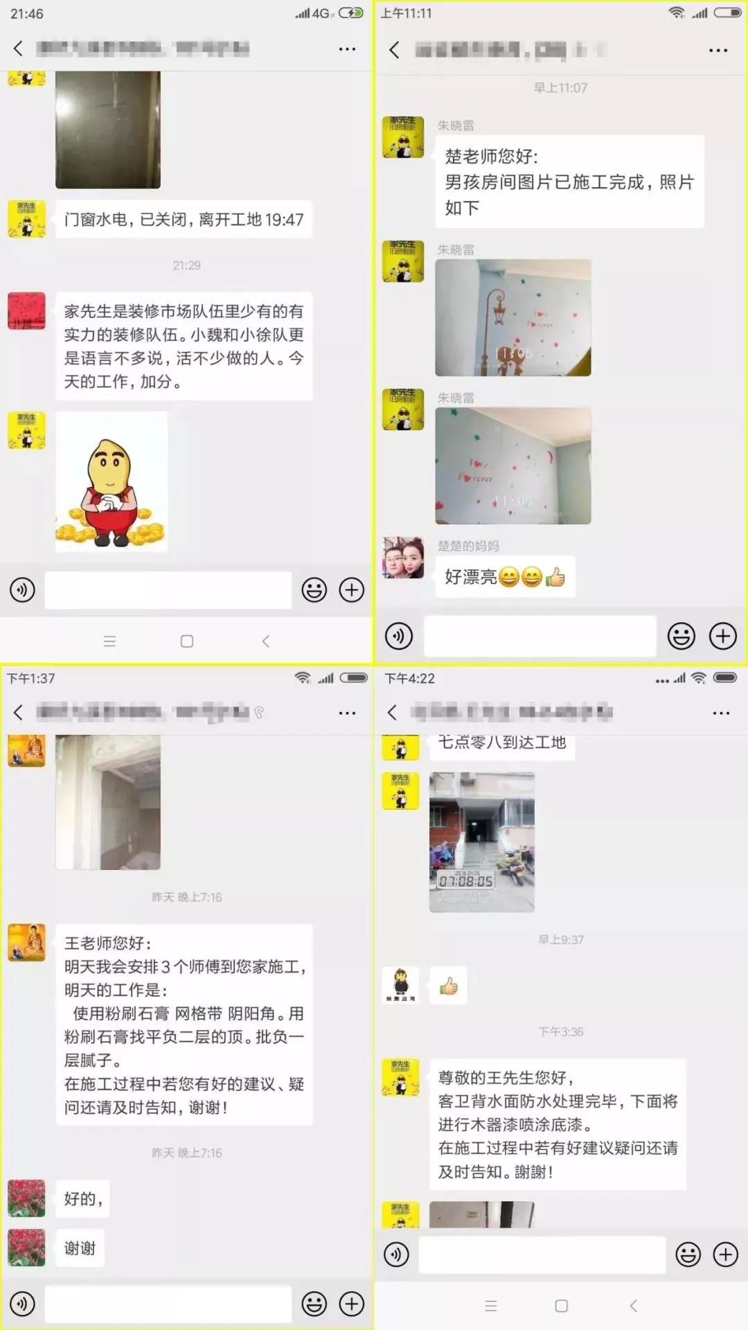 施工伊始,家先生便会组建“多对一”的客户服务群