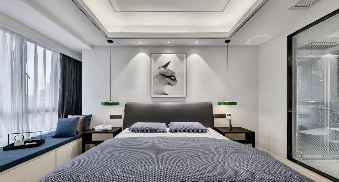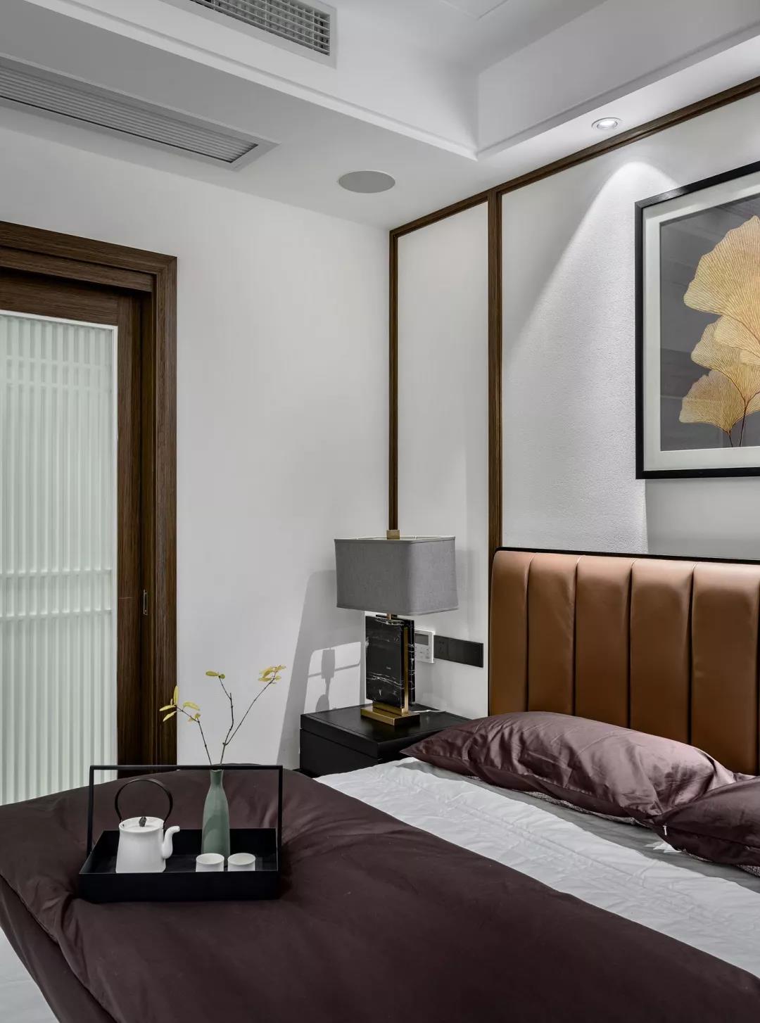 卧室现代雅致的空间基础,营造静气凝神的空间氛围,非常适合身处快节奏的现代都市人。床头柜设计,瞬间让卧室增添了几分新中式韵味。