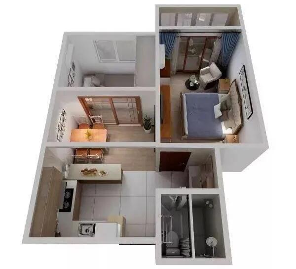 主卧面积虽然被缩小了,但是靠墙的榻榻米布置,还拥有收纳功能,非常实用。