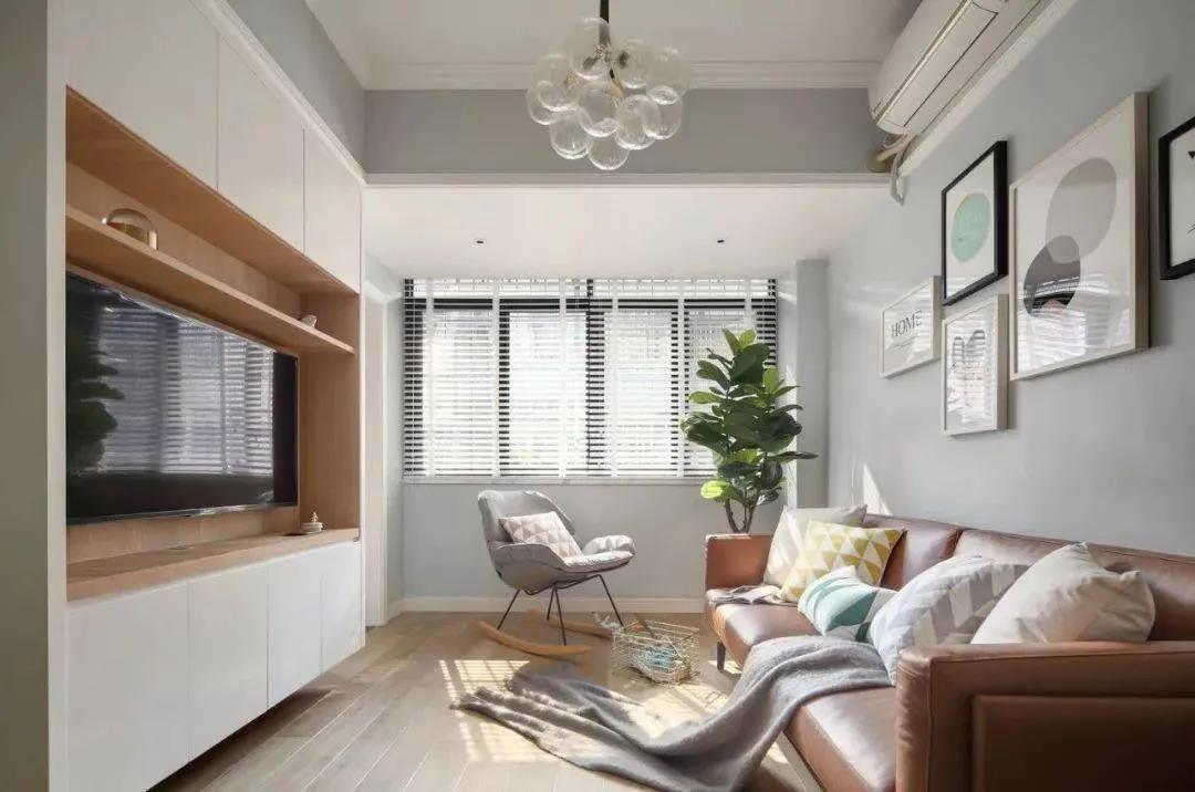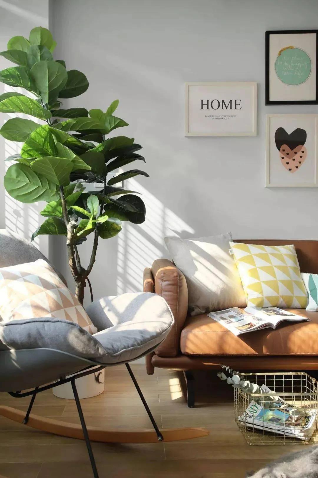 将阳台和客厅打通,扩大客厅面积。在窗边放上一把摇椅晒晒太阳不要太惬意。