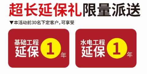 本活动前30名下定客户,可享受翻新基础工程延保1年,水电工程延保1年。