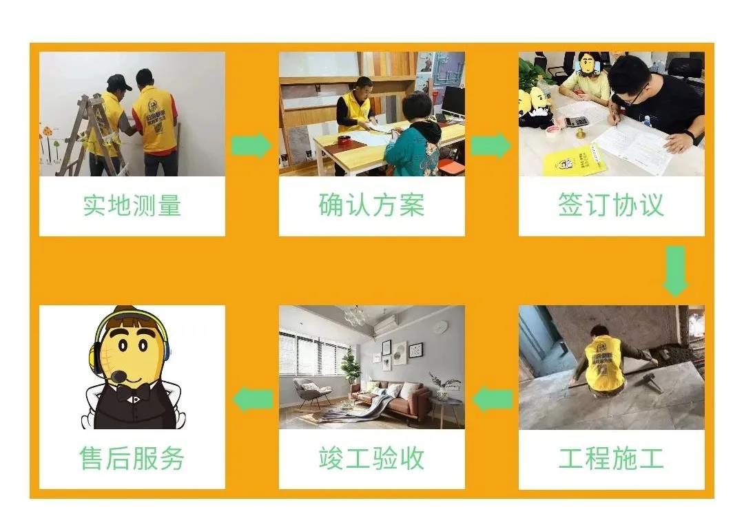 家先生场景化解决方案,提供从翻新前的免费上门、设计、主辅材选择,到翻新中的成品保护、专业施工,再到翻新后的垃圾清运、空气治理等一站式服务。