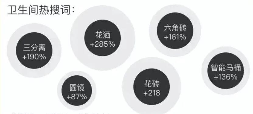 卫生间对当代年轻人来说,绝对是“灵魂的庇护所”,在这里独处、思考,被认为是珍贵的独处时光,年轻人更愿意为卫生间花钱,已经成为关注度增长最快的家居空间。从干湿分离演变到三分离、四分离;智能马桶、恒温花洒、六角砖、圆镜等元素迅速走红。