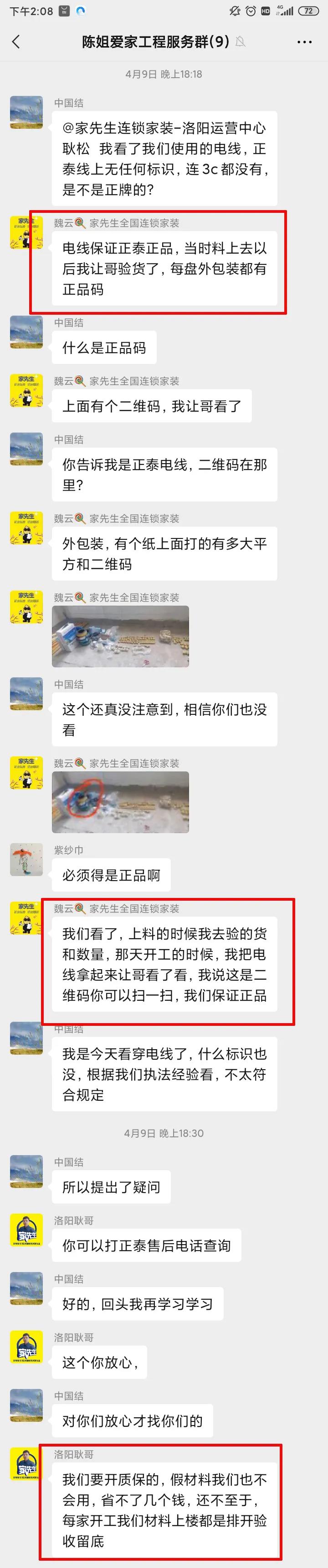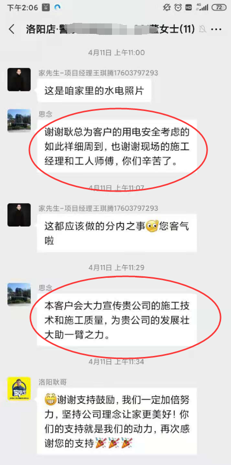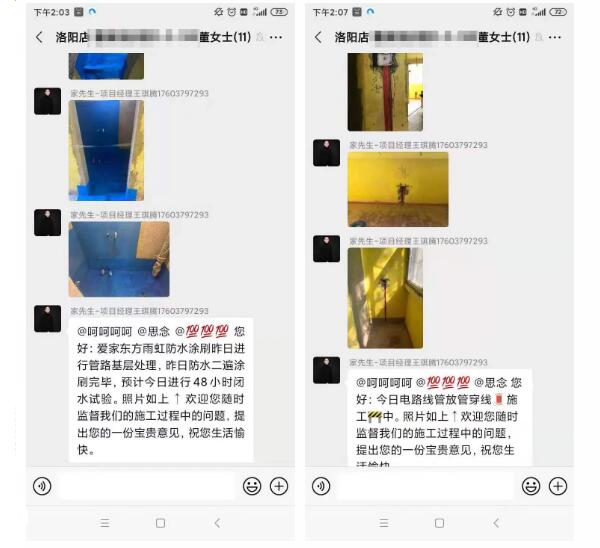 施工进度和细节对接都会在微信群内及时同步,不用担心没时间盯工地。期间业主或者监理反馈问题,都能及时反馈调整,保障好施工质量。