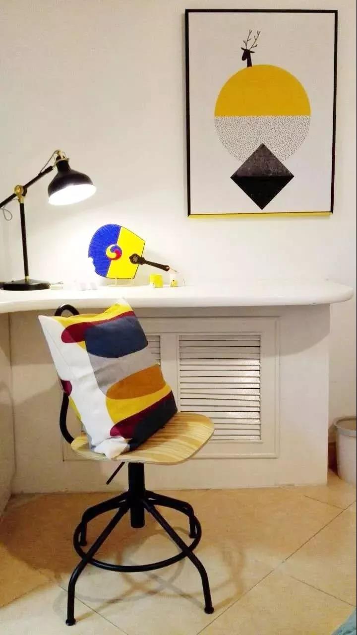 打造多功能区域是小户型常见的设计,简单的书桌+椅子+台灯,就打造了一个小型的办公空间。