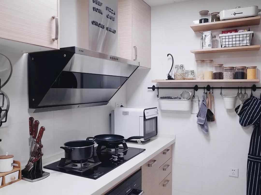 大功率的油烟机,完美解决开放式厨房的油烟问题。