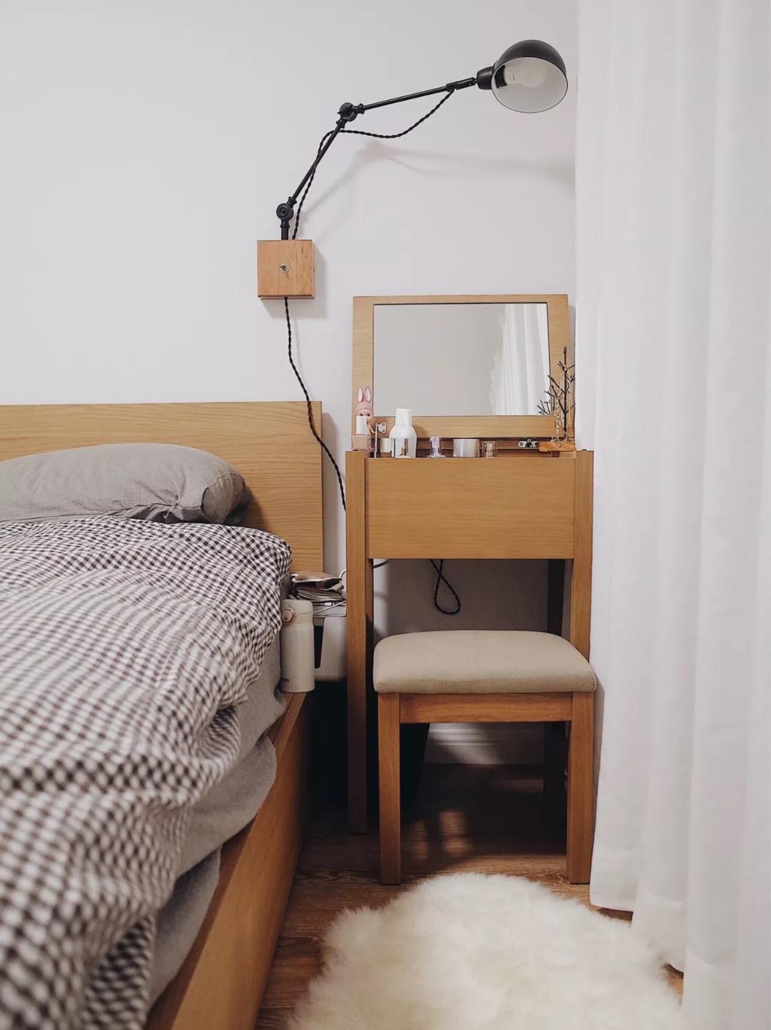 床的另一边采用梳妆台设计,同样是原木色,显得质感十足。
