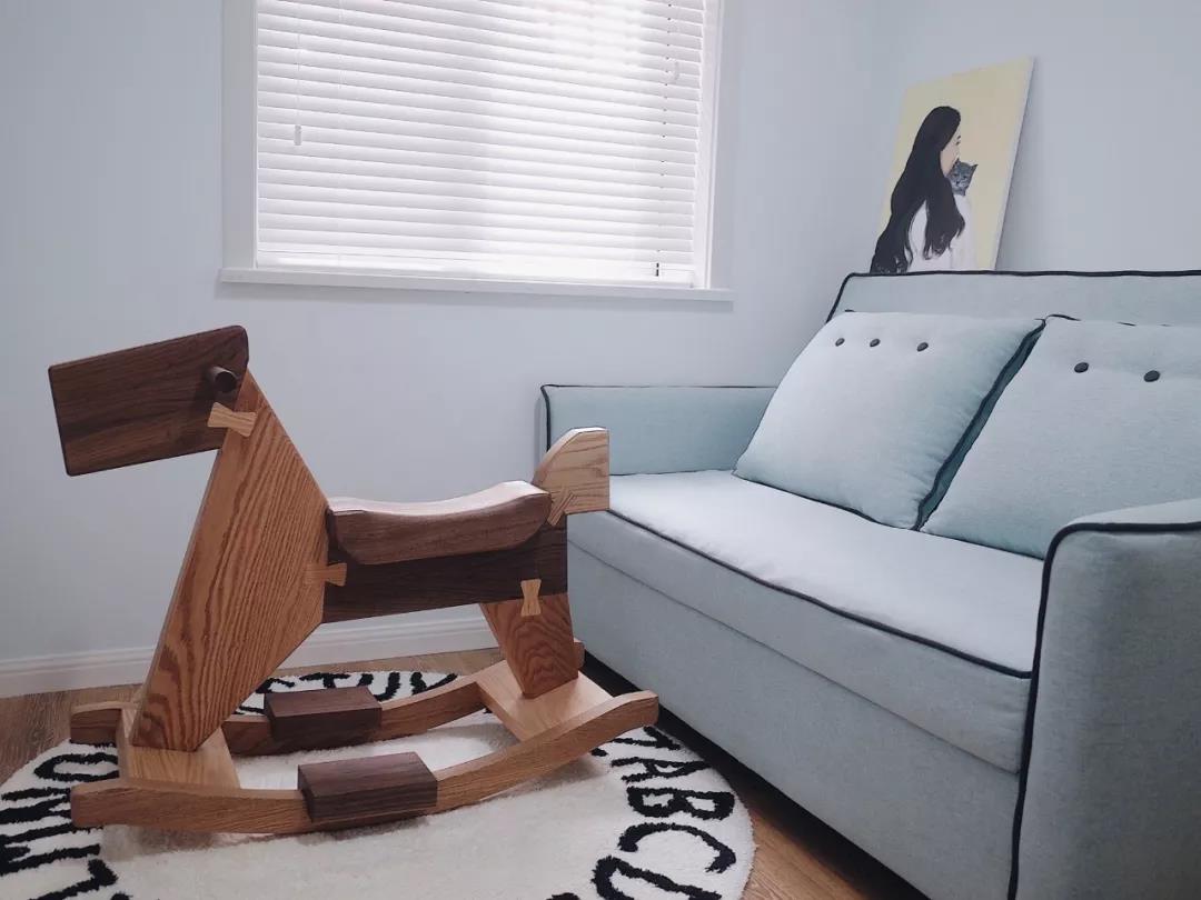 儿童房目前处于闲置状态,只摆放了一张简单的沙发床,可以在有客人来时作为客房使用。
