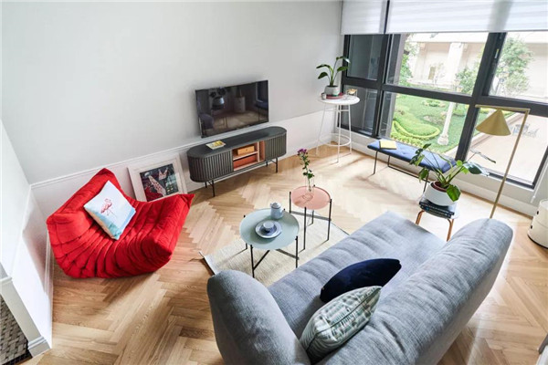 北欧风格的顶、墙、地三个面,完全不用纹样和图案装饰,只用线条、色块来区分点缀。
