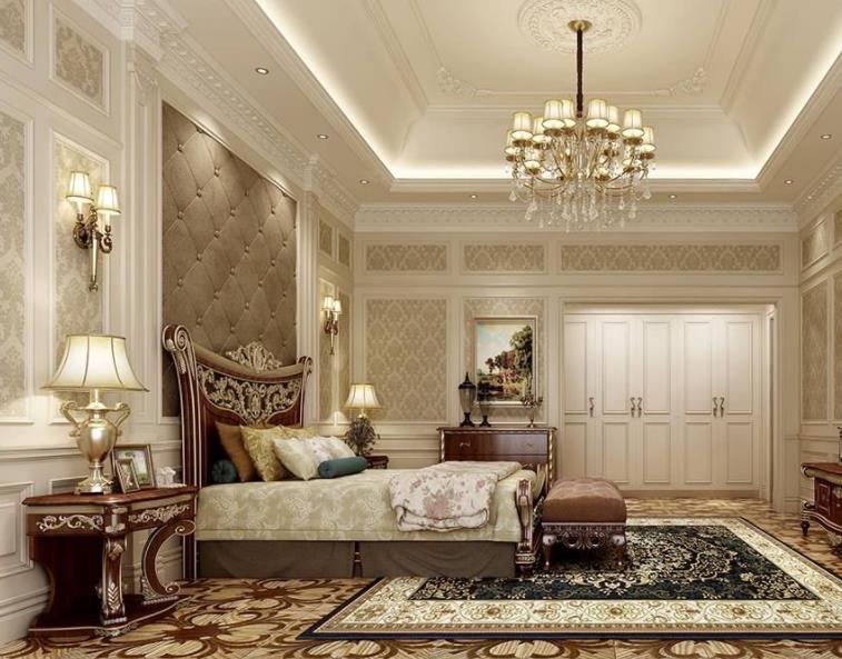 欧式卧室的地板宜选用实木地板,木质材质的地板,除了健康环保、调节室内的温度、湿度外,还容易融入家庭欧式装修的风格中,和谐而不突兀,既有欧式风格的古典美,又能营造浪漫温馨的欧式情调。