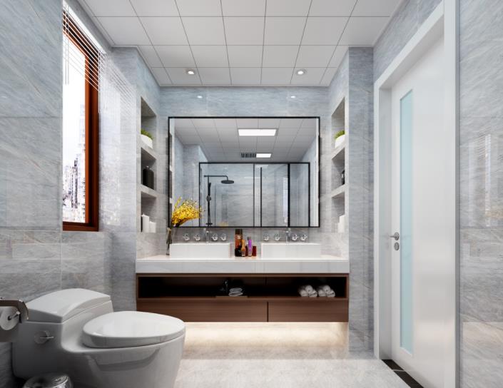 首先别墅卫生间装修要学会运用对比色,对比得当不仅不会让空间混乱,反而看起来非常整洁。例如,中性色灰色搭配米色的瓷砖就是很好的选择,中性比较时尚,搭配米色瓷砖会凸显出卫生间的设计感。