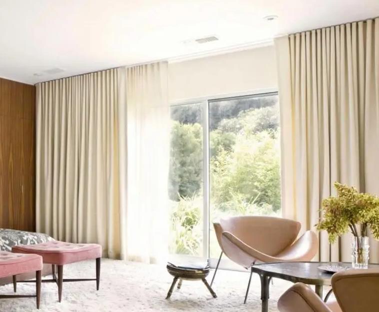 窗帘的布料要稍微厚一点,因为窗帘除了遮光以外,还有保温、隔音的能力。所以买窗帘的时候,不妨用手摸一摸——越厚的窗帘,保温、隔音能力就越强,好布料的垂感也会更好。
