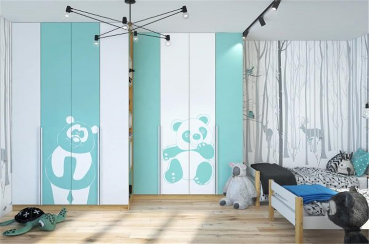 衣柜侧面采用镂空层板的设计,可以放置许多的玩具和书籍