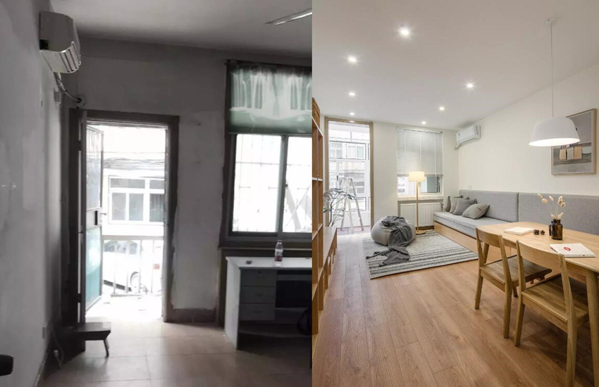 60平二手房装修改造效果图,砸掉一面墙打造开放