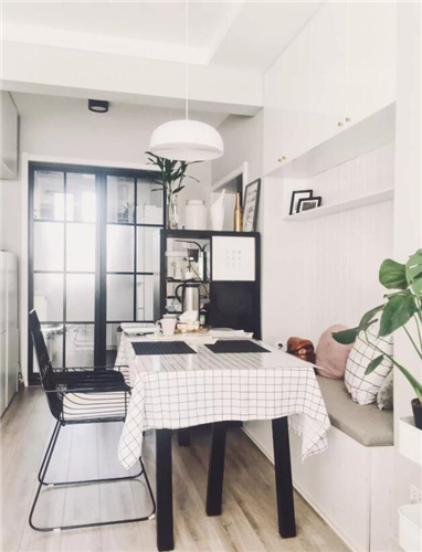 采用卡座加餐桌椅的设计,黑白的颜色搭配,清新自然。