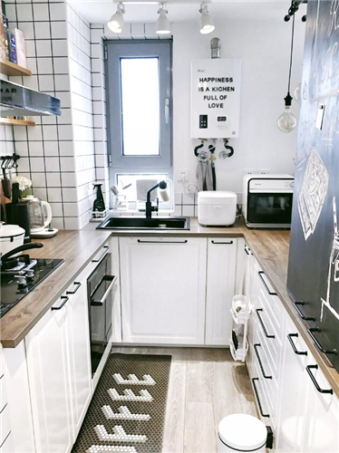 厨房采用开放式的造型,白色和原木色显得特别的搭。