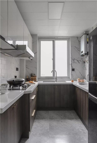 厨房采用分色的设计,白色和深木色相搭配,稳重大方。