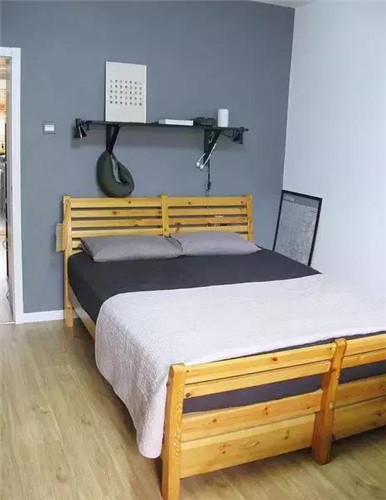 为保证和客厅的风格相统一,用漆把床头那面墙刷成灰色,一面高级灰,整个空间瞬间就高级起来了!