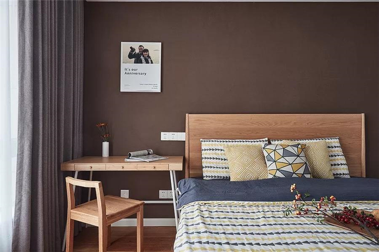 偶尔浓墨重彩,是这个家里软装搭配感受十分特别的手段之一。餐区,优化师并未选用一样的木椅,而是穿插的放置了一张长板凳以及三个独立的小凳子,打破了呆板和程式化。