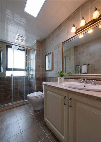 美式风格卫生间翻新装修案例效果图。